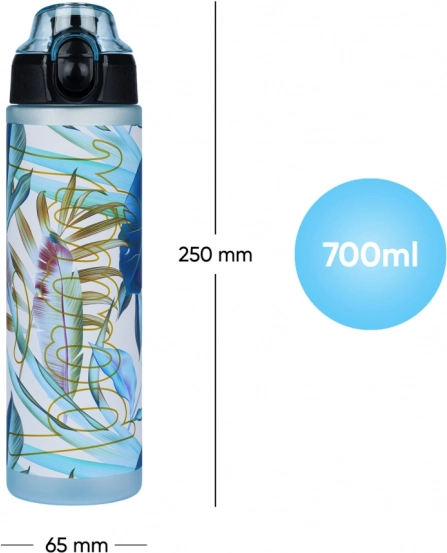 Stilska in zdravstveno neoporečna steklenica za vodo iz certificiranega tritana za vsakodnevno hidracijo. Ima prostornino 700 ml, zaklepni nepropustni pokrov s hitrim odpiranjem in zanko za udobno nošenje. Material je brez BPA, PVC in ftalatov, ne prevzema vonjev in je idealen za šolo, delo, šport in izlete.