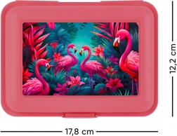 Odkrijte idealno rešitev za prenašanje malic, ki združuje dizajn in funkcionalnost. Ta škatla za malico s svojo rožnato barvo in motivom flamingov popestri vsakodnevno rutino. Izdelana je iz čvrste plastike, kar zagotavlja dolgo življenjsko dobo.