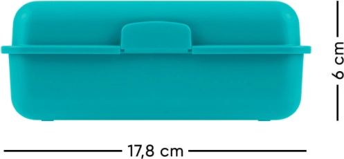 Oplemenitite svojo malico s stilom z našo škatlo za prigrizek Duha v turkizni barvi. Ta funkcionalna plastična škatla je idealna za vsakodnevno uporabo, zahvaljujoč enozapornemu zapiranju in praktični notranji razdelilni pregradi. Škatla je zasnovana tako, da je vzdržljiva in enostavna za prenašanje, kar jo naredi odličnega pomočnika za šolo in delo.