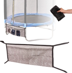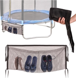 Ni več razmetanih čevljev in drobnarij okoli trampolina. Mrežasta torba pod trampolin je univerzalen organizator, ki se preprosto priveže na okvir in varno spravi obutev ter druge nujne predmete. Zaradi trpežnega poliestra in zračne mrežice se hitro suši in ostane lahka.