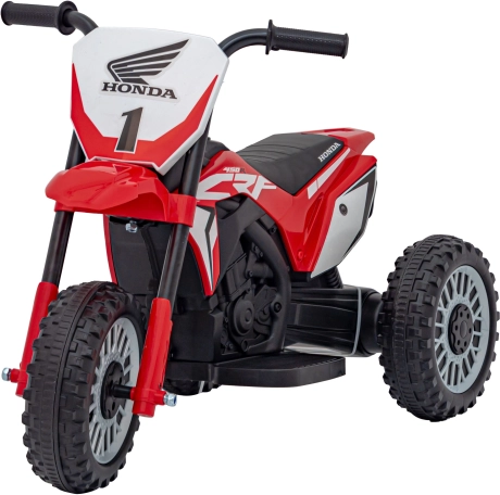 Ta licencirani otroški motor, navdihnjen z modelom Honda CRF 450R, je idealen za prve vožnje na vrtu ali doma. Trikolesna zasnova zagotavlja visoko stabilnost in zanesljivost pri speljevanju, medtem ko plastična kolesa z gumijastim tekalnim profilom nudijo boljši oprijem in tišjo vožnjo.