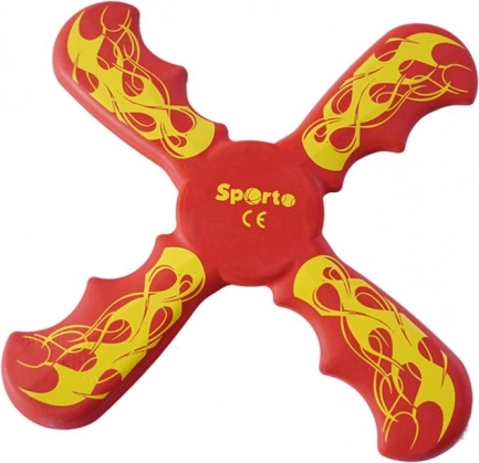 Uživajte v aktivni zabavi s penastim bumerangom SPORTO, ki izstopa z izrazitim rdeče-rumenim dizajnom in varno izvedbo. Lahko penasto telo zmanjšuje tveganje poškodb in je zato idealna izbira za otroke. Ergonomska oblika olajša met in ulov, zato se hitro naučite metati in vračati bumerang nazaj.