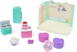 S to razkošno kuhinjico iz Gabinega Mačjega domka bodo otroci doživeli ure domiselne zabave. Odprite Mačje pošiljke in odkrijte pladenj z mafini, pito in kuharsko kapo, ki jo lahko Łakotek zares nosi. Specite dobrote v pečici in jih shranite v odpirajoči se hladilnik.