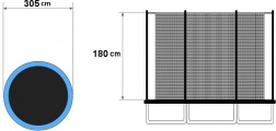 Notranja mreža preprečuje stik s stebri in vzmetmi ter ustvarja varen prostor za skakanje pri premeru 305 cm.