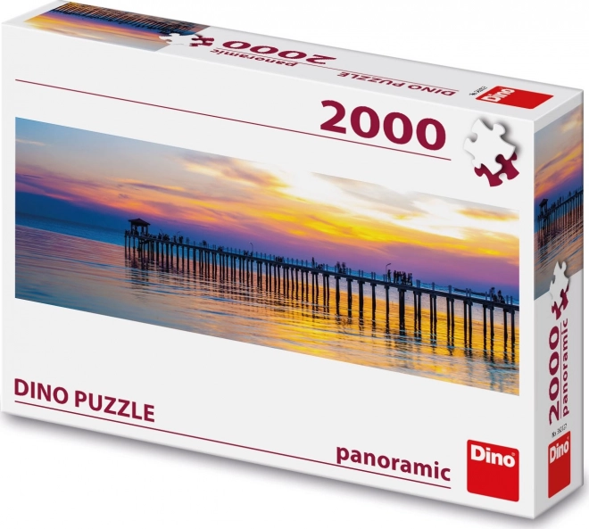Panoramska sestavljanka z nežno barvnim sončnim zahodom nad morskim pomolom bo razveselila vsakega ljubitelja čudovitih fotografij in zahtevnejših sestavljank. Zahvaljujoč 2000 natančno izrezanim koščkom boste uživali v premišljeni zabavi in popolnem rezultatu.
