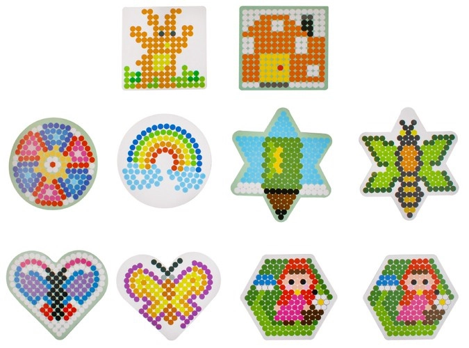 Ustvarjalni set zalikalnih perlic 5000 kos, 10 barv, šablone, podloge in pinceta v prenosnem vedriču. Spodbuja fino motoriko in kreativnost.