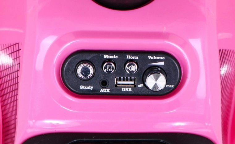 Glasba in zvoki poskrbijo za še več zabave – vgrajena avdio plošča omogoča predvajanje preko USB, AUX in prednaloženih melodij. Ergonomski sedež in primerna oddaljenost od tal podpirata udobno in stabilno vožnjo.