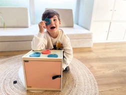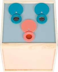 Ta moderna lesena senzorična in dotikalna škatla je zasnovana za spodbujanje čutov vašega otroka. Z dvema stranskima odprtinama in zgornjimi izklopnimi loputami lahko otroci raziskujejo na različne načine – skozi dotik, pogled, poslušanje in vonj. Škatla je odlična za razvoj motoričnih spretnosti in je primerna tudi za delovno terapijo.