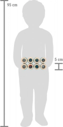 Zaradi raznolikih materialov znotraj vsake posodice igra razvija slušne sposobnosti in hkrati zagotavlja vizualno stimulacijo.