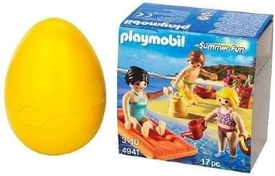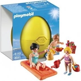 Odkrijte igrivo jajce PLAYMOBIL, v katerem se skriva poletni set s prizorom plaže – mamica z otroki uživajo v vodi, napihljivi blazini in gradnji peščenih gradov. Jajce hkrati služi kot hranilnik, zato lahko otroci med igro tudi varčujejo svoj drobiž. Idealno za kreativno igro, razvoj domišljije in kot zbirateljski kos za otroke od 4 let dalje.