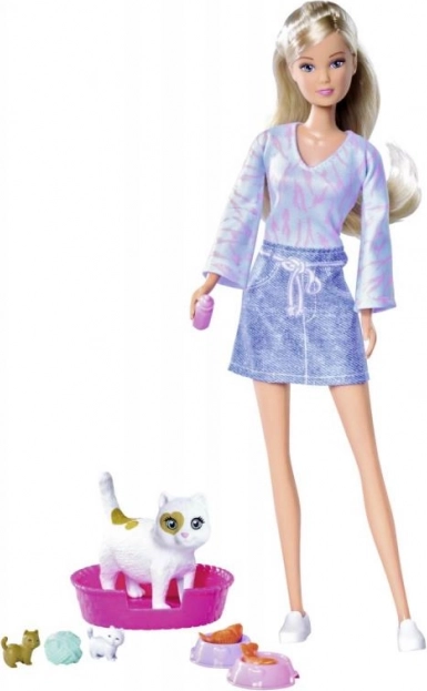 Uživajte v urah zabave z Lutko Steffi in njenimi tremi prisrčnimi mačjimi prijatelji. Ta edinstvena igrača je zasnovana za otroke, ki radi skrbijo za svoje živalske prijatelje in ponuja nešteto možnosti za domišljijsko igro: