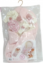 V pakiranju najdete usklajene kose, vključno s kapico, čeveljčki, povijalnikom/odejo in drugimi dodatki, ki omogočajo preprosto menjavo oprav glede na razpoloženje. Komplet podpira kreativno igro, razvoj fine motorike in otroke uči skrbi ter empatije skozi realistično igro vlog staršev.
