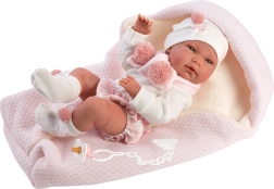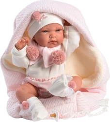 Mehkušen rožnat povijalnik z plišasto podlogo ohranja punčko na toplem in udobnem. Enostavno vezanje s trakom zlahka obvladajo tudi majhne otroške roke.