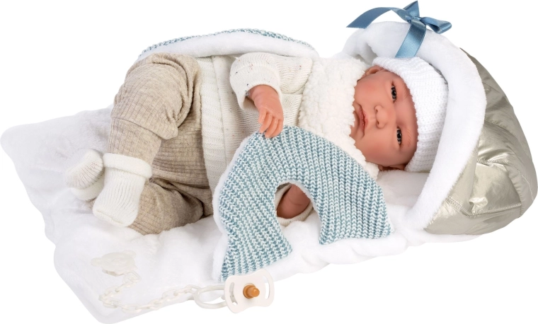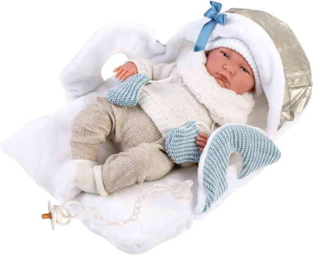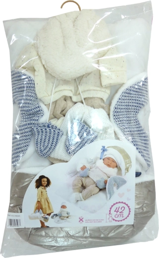 Privoščite punčki popolno udobje in stil. Ta skrbno usklajen komplet vsebuje vse, kar mali skrbniki potrebujejo: kakovostno oblačilo in mehko podlogo s kapuco ter trakovi za enostavno prenašanje. Zaradi ročne izdelave v Španiji komplet izstopa po natančni izdelavi, nežnih materialih in odličnem kroju za punčke NEW BORN 40–42 cm.