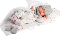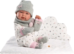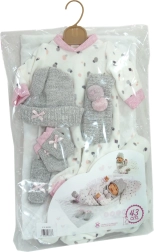 Vse na enem mestu: oblačilo, kapica, rokavičke, copatki in udobna podloga z blazinico v obliki oblačka za prijeten kotiček punčke.
