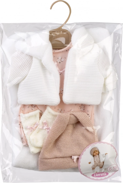 Outfit se odlično prilega punčkam Llorens 38 cm (modeli Jolelle, Lola, Diara) in spodbuja kreativno in domiselno igro. Kombinacija nežnih pletenin, vzorčastih oblekic in dodatkov punčki doda čar ter udobje za vsak dan.