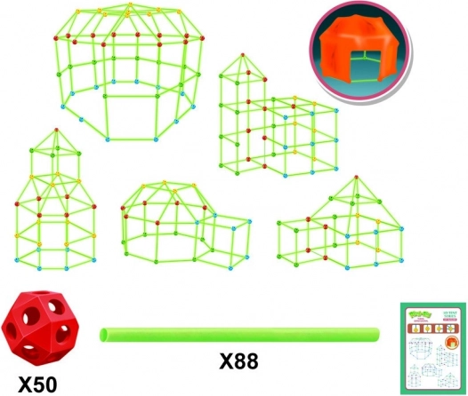 Gradbeni komplet tridimenzionalnega šotora prinaša zabavno in poučno gradnjo za otroke in starše. Iz trdnih delov lahko preprosto ustvarite različne 3D konstrukcije – od preprostega šotora do ustvarjalnih hišic ali tunelov. Zahvaljujoč pametnim spojem je konstrukcija stabilna, hkrati pa jo je mogoče zlahka razstaviti.