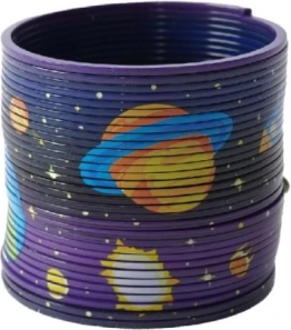 Barvita igralna spirala, potiskana s planeti. S to spiralo se bodo zabavali tako mlajši kot starejši otroci. Pretaka se iz ene strani na drugo, razteza se kot vzmet in skače z ene stopnice na drugo.