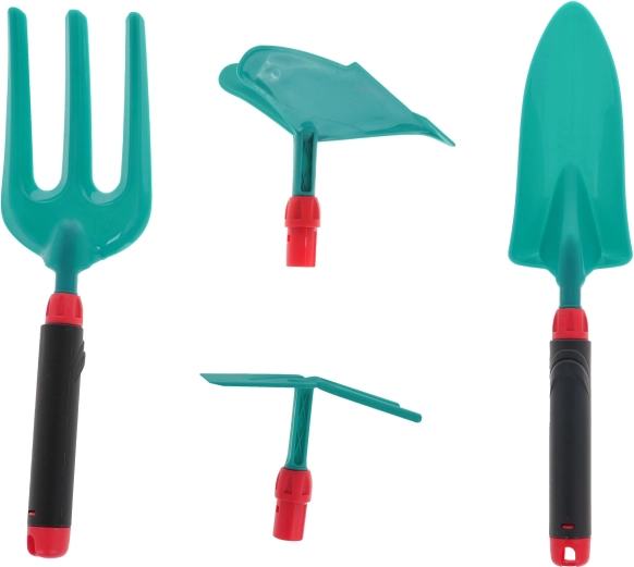 Odkrijte zabavo na vrtu s tem varnim otroškim kompletom vrtnarskega orodja za otroke od 3 let. Komplet vsebuje 4 lahka orodja brez ostrih robov in z odstranljivimi ročaji za enostavno shranjevanje. Univerzalna turkizno–rdeča barvna kombinacija je primerna za fante in deklice, ergonomske oblike pa se odlično prilegajo majhnim otroškim rokam.