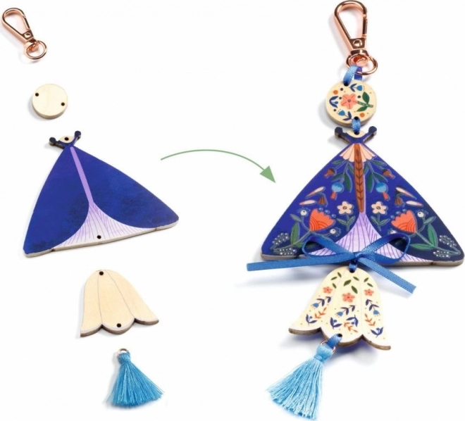 Ustvarite svoje čarobne obeske v obliki metuljev s kreativnim kompletom DJECO. Komplet ponuja več kot 100 nalepk in dodatkov, enostavno zapenjanje s kaveljčkom ter navodila po korakih za brezskrbno ustvarjanje. Po končanem projektu dobite stilno dekoracijo za torbo ali ključe iz FSC® certificiranega lesa.