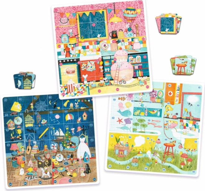 Igra vsebuje tri različne tematske igralne plošče: Kopalnica, Kuhinja in Podnožje. Vsaka od teh plošč ponuja različne stopnje težavnosti, tako da lahko izberete glede na sestavo igralcev in njihove sposobnosti. Pripovedovalec pokaže svoje sposobnosti pri opisovanju malih kart, da lahko ostali najdejo pravilen položaj na velikih igralnih ploščah.