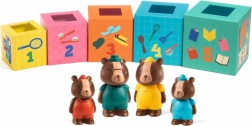 DJECO sestavljive kocke z motivom medvedje družinice ponujajo veliko zabave in izobraževalnih možnosti. Otroci lahko gradijo stolp, vstavljajo kocke eno v drugo ali jih uporabljajo za učenje barv in živali.