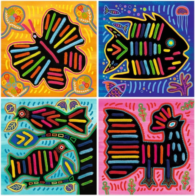 Ta igra omogoča otrokom, da po navodilih enostavno vpletajo chenille žice skozi velike luknje na ilustriranih karticah, s čimer ustvarjajo čudovit barvast dizajn. To je enostavna dejavnost, ki je primerna tudi za mlajše otroke.