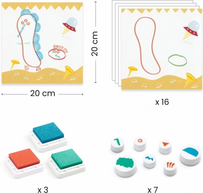 Nabor štampiljk za otroke z motivi pošasti ponuja zabavo in spodbuja ustvarjalnost malih umetnikov. Otroci lahko eksperimentirajo z različnimi kombinacijami in ustvarjajo prikupne slike.