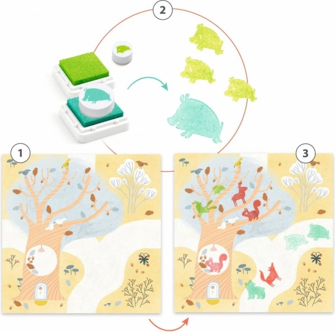 Set štampiljk z živalskimi motivi, ki bo razveselil vsakega otroka. S tem setom lahko otroci ustvarjajo ljubke slike in hkrati razvijajo svojo kreativnost.
