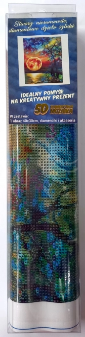 Diamantno slikanje je odličen način za sprostitev in ustvarjalno zabavo za vse starostne skupine. Ustvarjajte čudovite slike skupaj z družino in prijatelji. Komplet vsebuje vse, kar potrebujete: platno, aplikacijsko pero, kamenčke, posodico in vosek – zato ne potrebujete nobenih umetniških veščin.