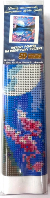 diamantnim slikanjem Vzhajajoča luna. Ta komplet je primeren za vse starosti in prinaša veselje ustvarjanja skupaj z družino ali prijatelji.