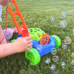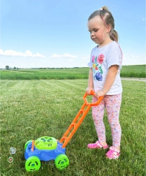 Kosilnica posnema ropot pravega stroja, dodaja zvoke mehurčkov in predvaja pravljčno melodijo za maksimalno zabavo.