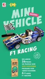 Ta 3D lesena sestavljanka ponuja odlično priložnost za razvijanje fine motorike in prostorske predstave pri otrocih. Enostavna za začetnike, a hkrati dovolj zabavna za napredne. Sestavljena je iz 26 kosov, po sestavi pa meri 14 cm v dolžino, 4,9 cm v širino in 4,3 cm v višino. Poleg tega, zahvaljujoč mehanizmu za povratno napetost, se formula dejansko premika naprej.