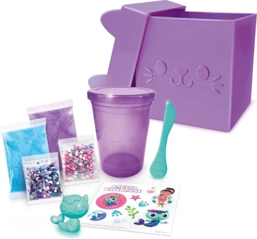 Plastična masa Gabin mačji dom – Mačja škatla presenečenj, vijolična (sluz)