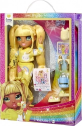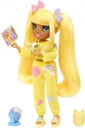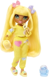 Sunny je pripravljena na nepozabno pižama zabavo! Ima dvodelno rumeno pižamo s srčki in mavrico, ujemajoče se rumene copatke ter dolge ravne lase, spete v dva čopa z mašnicami. Velike steklene oči in dolge trepalnice lutki dajejo edinstven izraz, ki ga bodo otroci oboževali.