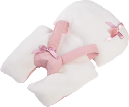 Mehka podloga z dekorativno pentljo in varnimi trakovi služi kot praktičen stolček za stabilno posedanje punčke.