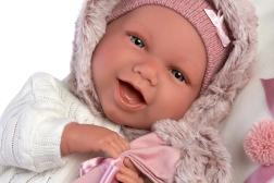 Ta eleganten komplet razširi možnosti igre z dojenčki NEW BORN velikosti 40–42 cm. Oblačilo z nežnimi okraski in praktična podloga s pentljo ter trakovi omogočata udobno posedanje punčke kot na stolčku, kar otrokom prinaša več zabave in realizma pri igri.