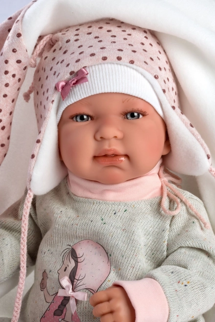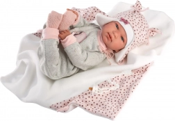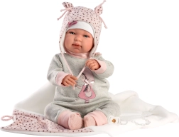 Del kompleta je tudi stilska odejica s cofom za zavezovanje, ki dopolni videz punčke in polepša igro uspavanja.