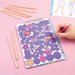 Kdo ne bi imel rad scrap arta in mode? Združili smo oboje v eno! S praskanjem razkrijte spodnji potisk modnih skic. Klasične pobarvanke z figurami in nalepkami dopolnijo celoten modni dizajn.
