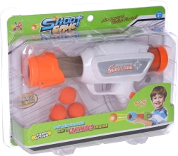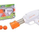 Uživajte v zabavi s to črpalno puško, ki izstreljuje mehke penaste žogice. Popolna za igrive dvoboje s prijatelji ali družino.