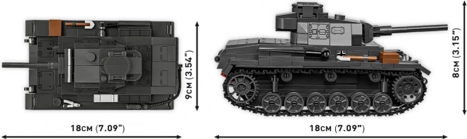 COBI Panzer III Ausf. J je natančno izdelana stavebnica, navdihnjena z vzhodno fronto druge svetovne vojne. Model ponuja odpirajoč se loput, vrtljiv stolp, premično cev in funkcionalna kolesa z gosenicami. Zaradi bogatih potiskov deluje tank realistično in zvesto posnema oblike zgodovinskega izvirnika.
