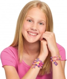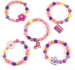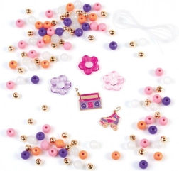 Komplet vsebuje prozorno elastično vrvico, 23 perlic, ki spreminjajo barvo, 49 klasičnih perlic, 39 zlatih perlic, 3 cvetlične obeske, 2 kovinska obeska, navodila in praktično shranjevalno škatlo.