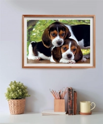Ta sestavljanka z motivom dveh mladičkov beagla prinaša popolno kombinacijo počitka in zabave. Kompaktna škatla prihrani prostor in varuje okolje, medtem ko kakovostni materiali in oster tisk omogočajo udobno sestavljanje ter čudovit rezultat.
