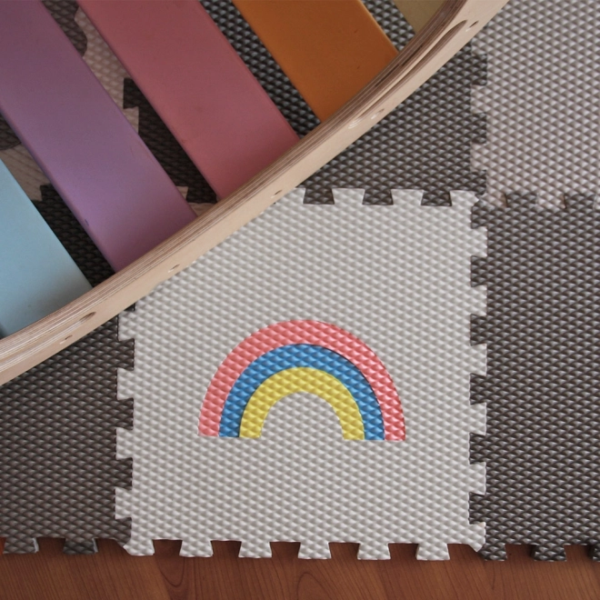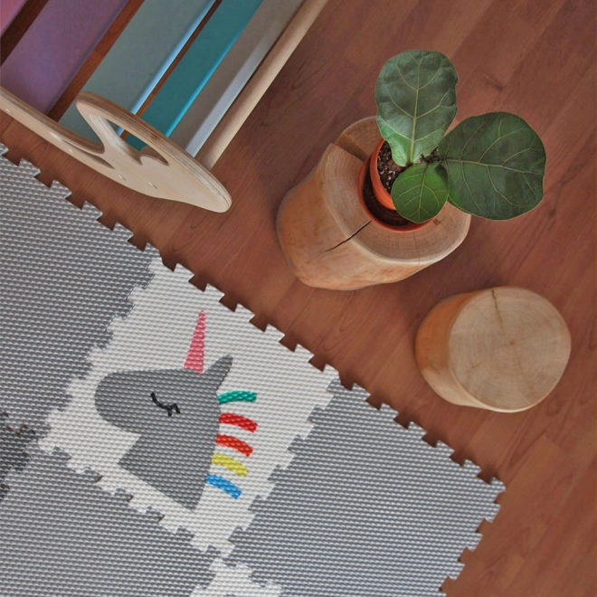 Ustvarite za otroke varen in udoben kotiček s penasto podlogo iz 12 delov v motivu svetlosivega samoroga, mavrice in živalic. Deli se trdno zaskočijo zahvaljujoč sistemu utorov, podlaga je mehka, izolativna in enostavna za čiščenje. Material Vylen je certificiran, zdravstveno neoporečen in izdelan v Češki republiki.
