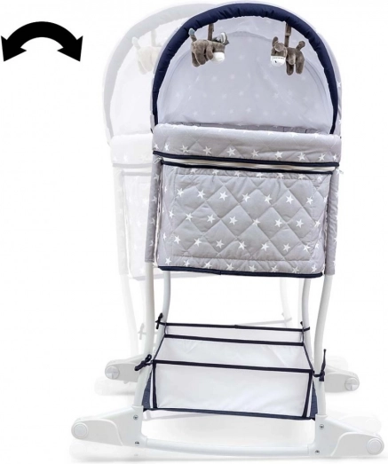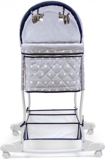 Funkciji zibelke in posteljice je mogoče preprosto menjavati zahvaljujoč intuitivnemu upravljanju. Prevleke strešice in košare je mogoče sneti za nežno pranje. Mehka vzmetnica zagotavlja otroku udobje in prijeten spanec.