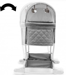 Majčka je opremljena s praktičnim spodnjim košem z dvema prekatoma za potrebščine otroka. Njeno intuitivno upravljanje omogoča gladke prehode med funkcijami majčke in posteljice. Prevleke senčila in košare so odstranljive za nežno pranje, mehka vzmetnica pa zagotavlja maksimalno udobje med spanjem.
