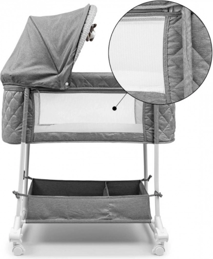 Visoke stranske stene z mrežico omogočajo odličen pretok zraka in popolno vidljivost, kar staršem omogoča imeti otroka pod nadzorom in hitro reagirati ob prebujenju.