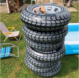 Ponujamo vam stajliš napenljiv obroč v obliki pnevmatike, idealen za sprostitev in zabavo v vodi. Izdelek navduši z realističnim vzorcem tekalne površine in kontrastnimi barvami, kar mu daje edinstven značaj. Odlična izbira za bazene, plaže ali jezera.