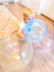 Orjaški napihljiv mehur s premerom do 75 cm prinaša ure zabave doma in na prostem. Je vzdržljiv, enostavno se napihne in otroci si z njim lahko odbijajo, ga kotalijo ali nanj sedejo po svoji domišljiji. Na voljo v različnih barvah, idealno za otroke od 3 let.