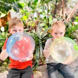 Transparentna in barvita izvedba doda igri čar – mehur je mehak na dotik, a hkrati dovolj trden za običajno razigranost. Zlahka se napihne in izpusti, zato je primeren za potovanja in za vsakodnevno zabavo.